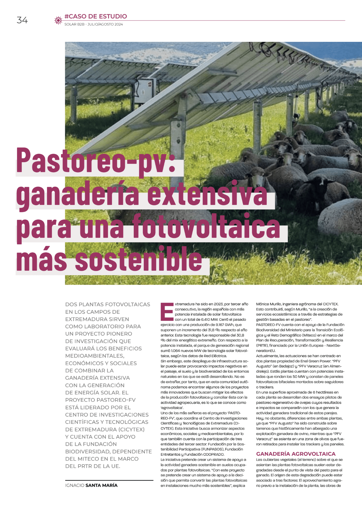 Os compartimos este número de la revista Solar B2B, donde se ha publicado el reportaje sobre el proyecto PASTOREO-PV titulado «ganadería extensiva para una fotovoltaica más sostenible» en las páginas 34-36 del documento adjunto.